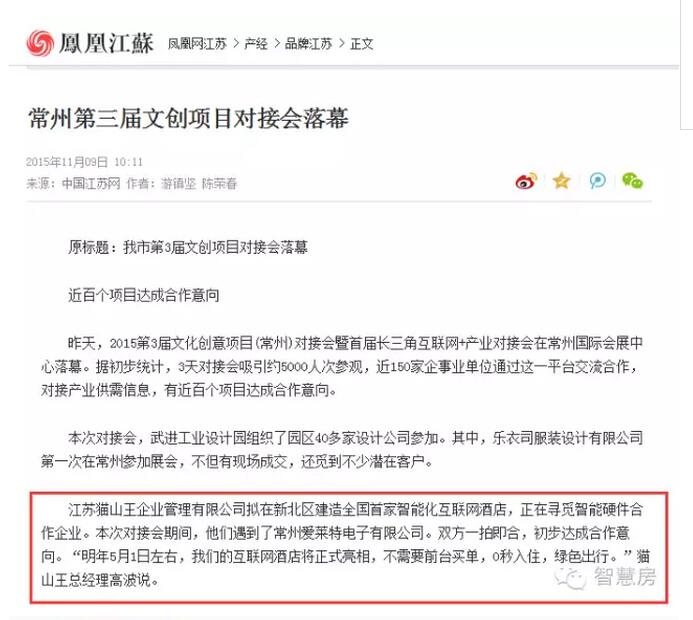 打造魅力智能化互聯(lián)網(wǎng)酒店——貓山屋與愛萊特合作共贏